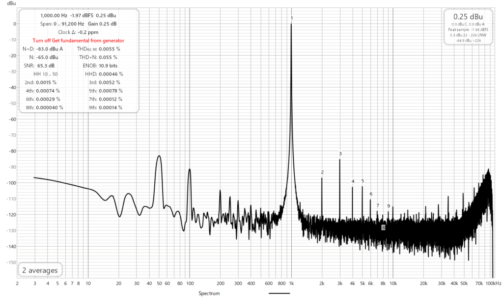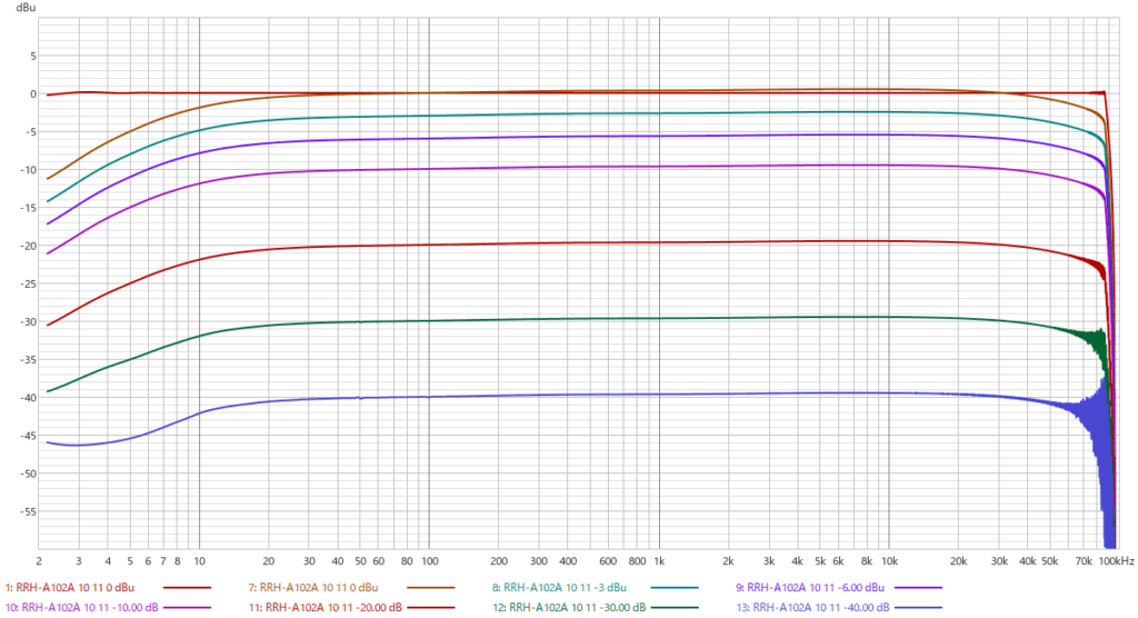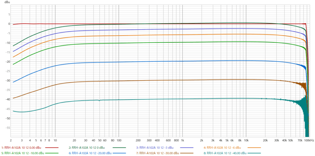 以下の特性の測定には、下記のツールを使用し、信号は0dbu (0.775Vrms) を基準にして測定しています。